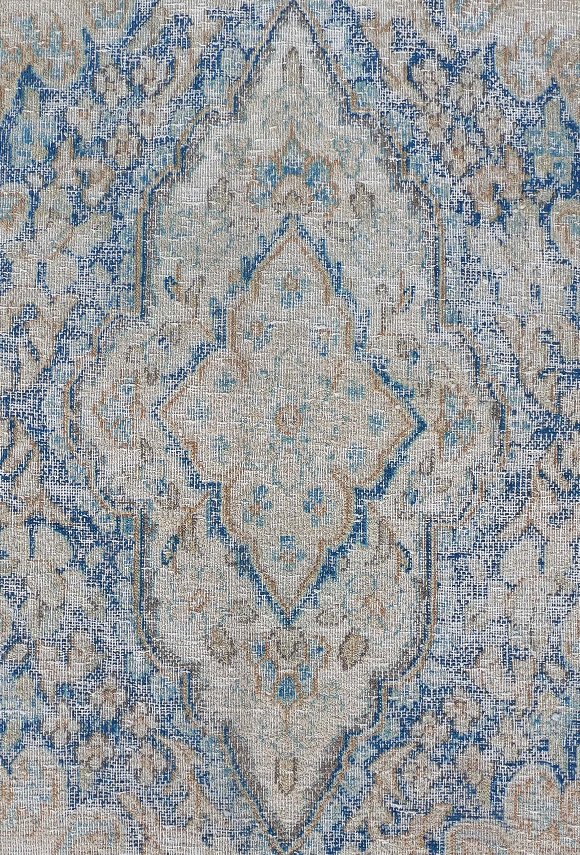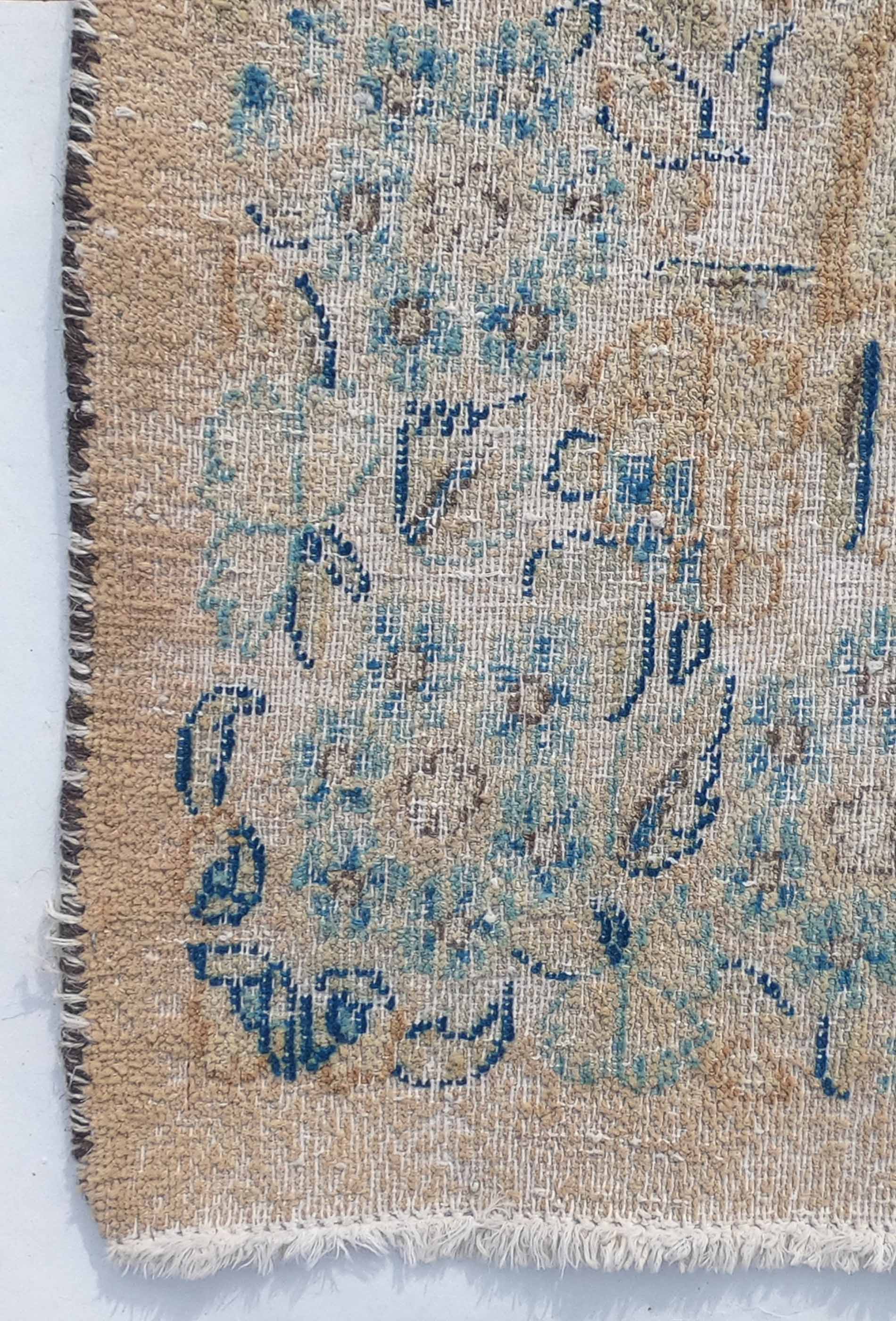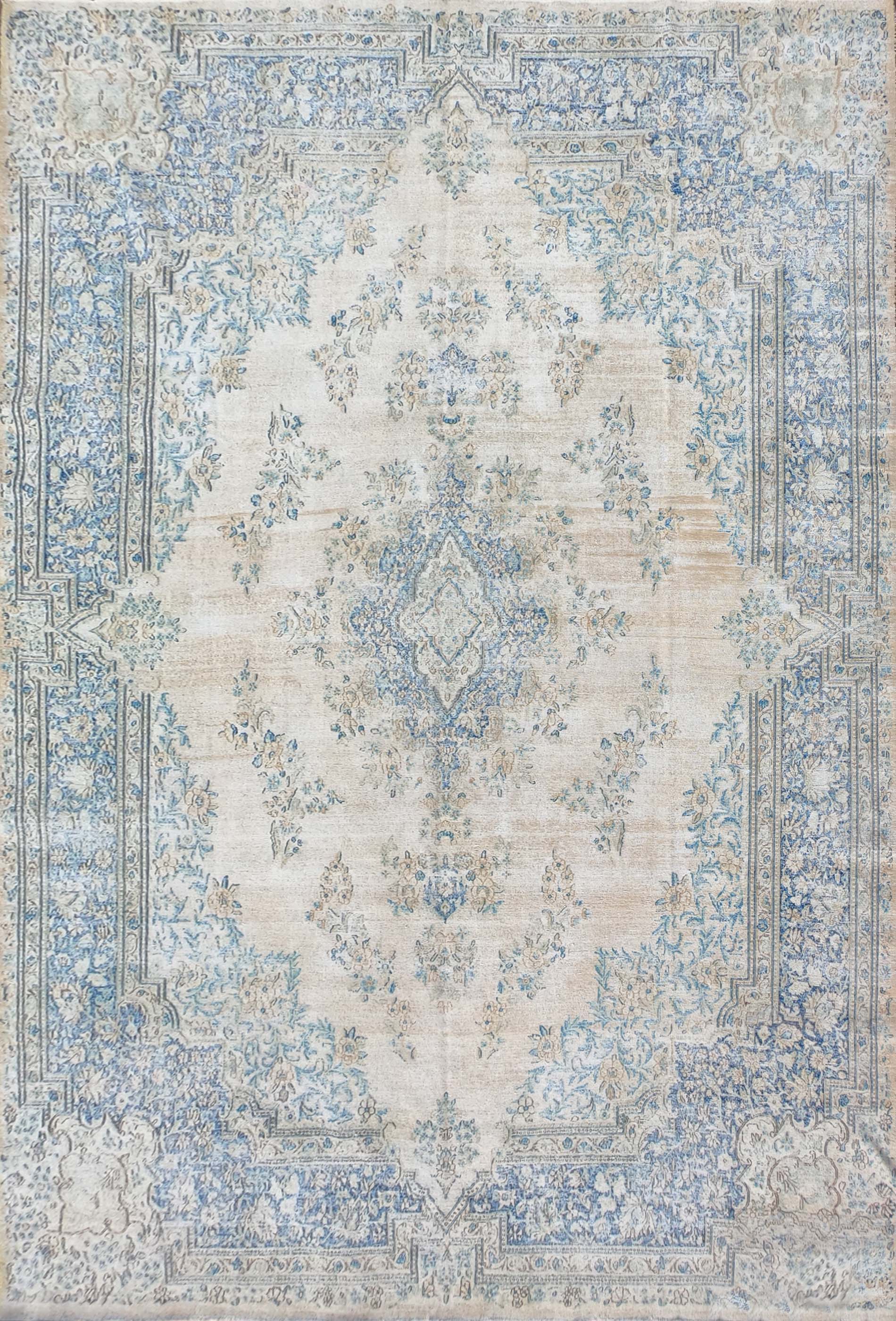 Alfombra Karim de origen Iraní. Esta alfombra fue desgastada cuidadosamente y sometida a un proceso de neutralización para darle una apariencia desgastada de manera intencional. Anudadas completamente a mano.