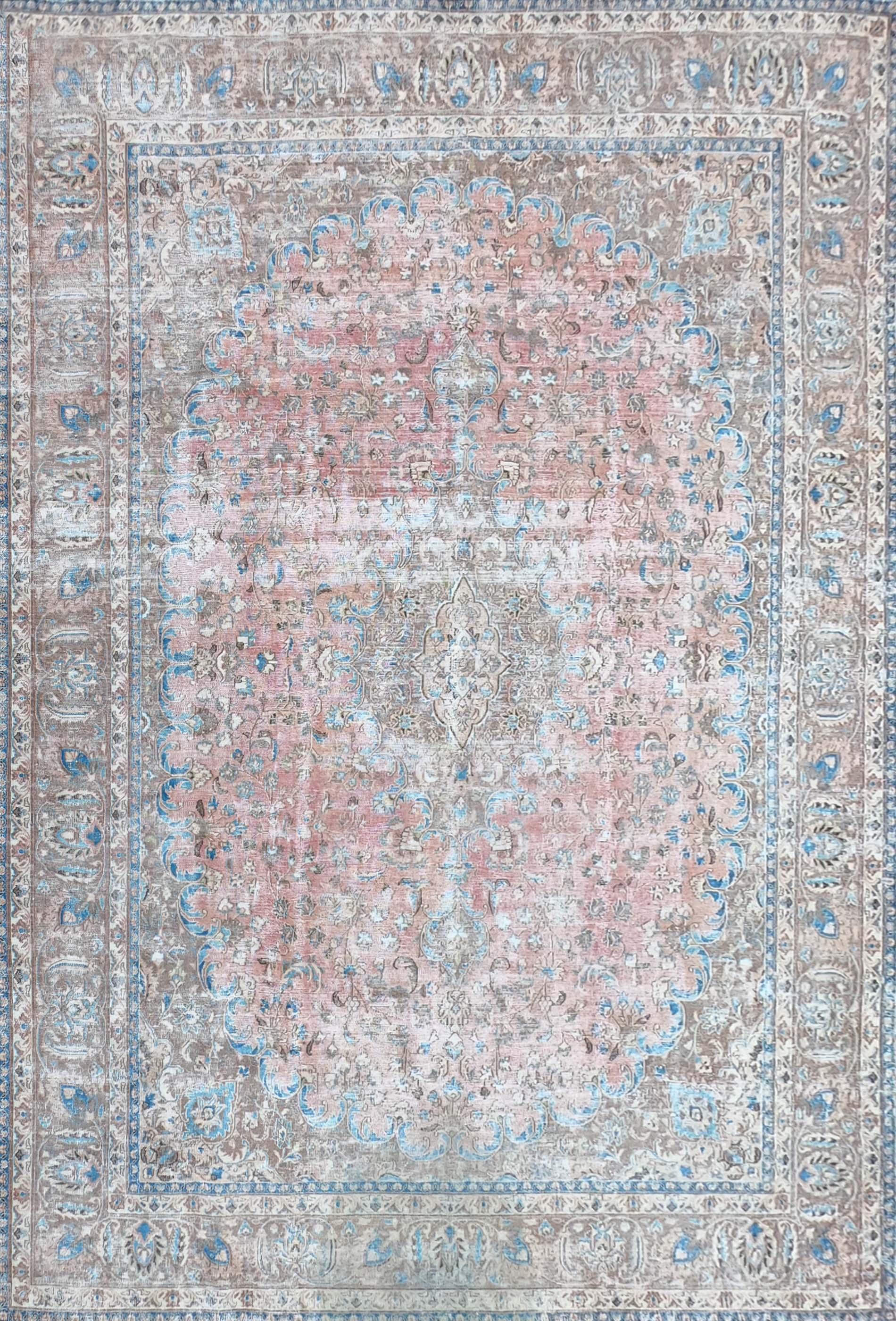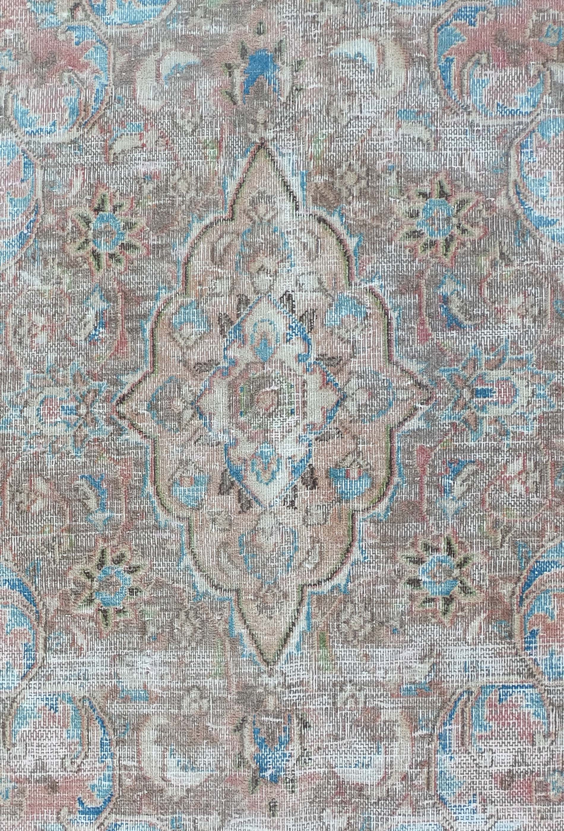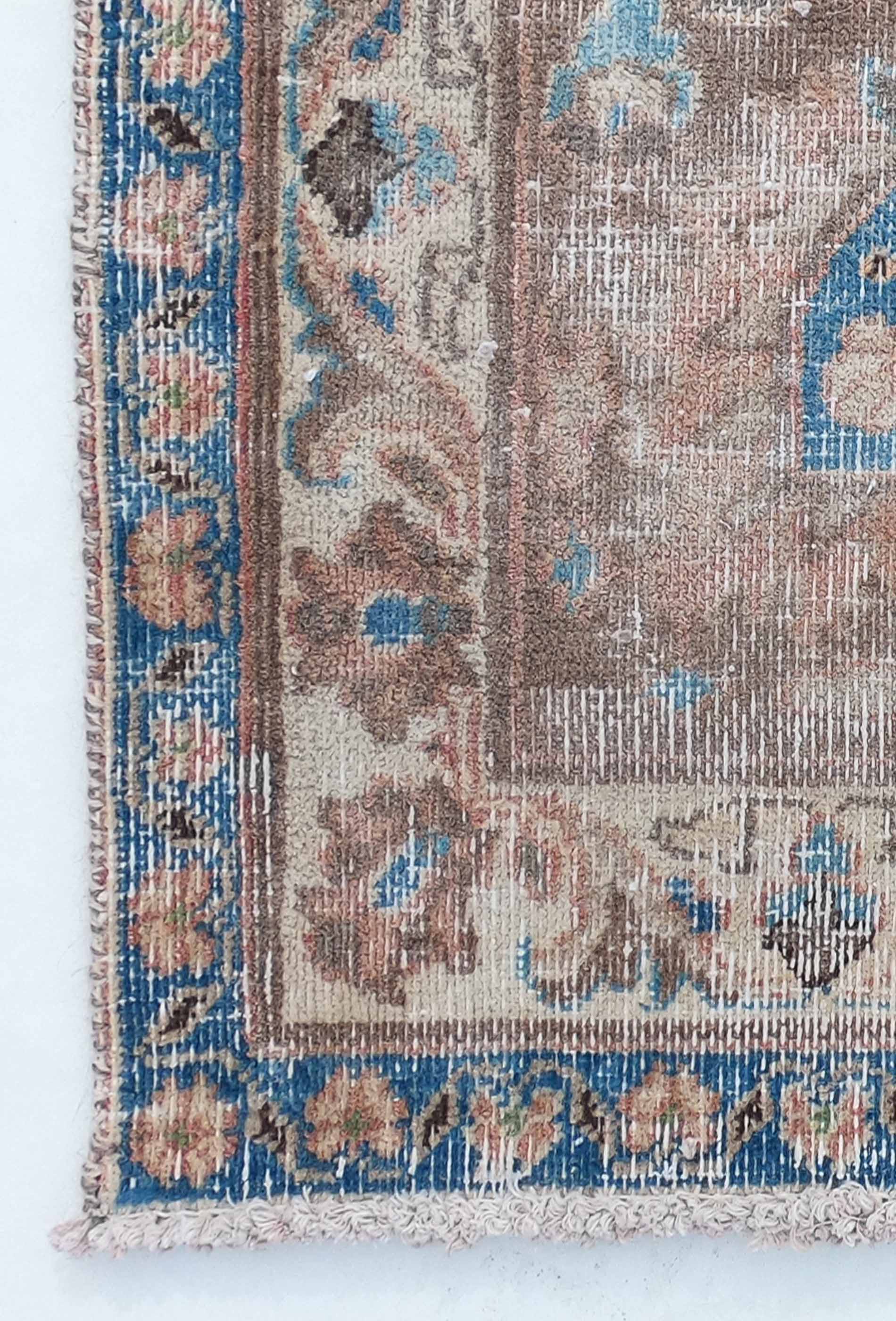 Alfombra persa clásica antigua (desde 30 años o más) de origen Turco. Esta alfombra fue desgastada cuidadosamente y sometida a un proceso de neutralización en donde se deja la alfombra de un solo color para luego ser teñida sobre su diseño original. Todos los procesos anteriormente mencionados se han aplicado para darle una apariencia desgastada de manera intencional. Las alfombras Persa han sido anudadas completamente a mano por lo que pueden existir diferencias en sus dibujos, tamaños y colores lo que las hace aún más auténticas.